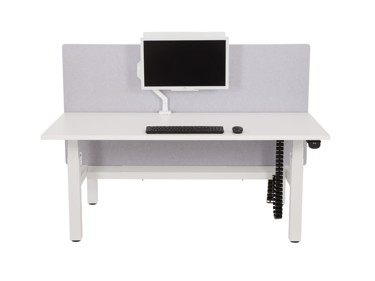 Het NPR 1813 duo zit sta bureau die elektrisch hoogte verstelbaar is van Youp voor het professionele werk. Het heeft een sterk 2x 2 motorig systeem wat het bureau snel en zeer stil op hoogte brengt. Het bureau kan bediend worden met het luxe touch-flip-control display met trilfunctie of via bluetooth met een app. Het slaat uw persoonlijke instellingen op en heeft extra functies zoals een sta-reminder, calorieverbruik, memoryfunctie en hoogte weergaven. Het bureau heeft een draaggewicht van 140 kg. Hierdoor verstelt het bureau eenvoudig en moeiteloos, ongeacht de spullen op het bureau. Door de NPR 1813 normering is het bureau voor 99% van de mensen geschikt.