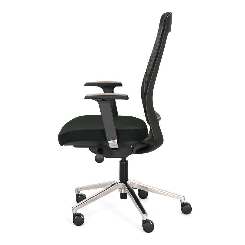 Deze ergonomische bureaustoel is breed verstelbaar volgens arbo norm en voldoet aan de EN-1335 eisen. De Ledderra is zo ver verstelbaar dat het richting NPR 1813 norm gaat (dus nog verder aanpasbaar). De rugleuning is vast te zetten op 5 standen, of je kan de rugleuning laten meebewegen en dan zelf de weerstand instellen. De zitting zit comfortabel, niet te zacht en de netweave rugleuning met lendensteun zorgt voor een juiste werkhouding. Een goede bureaustoel waarop u de hele werkdag (6-8 uur) op kan zitten. Standaard wordt de stoel geleverd met multifunctionele wielen voor harde en zachte vloeren.