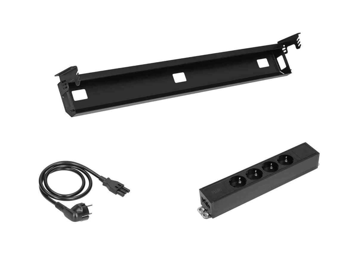Een kabelverwerkingset voor zit sta bureaus inclusief PLUX doorkoppelbare GST elektra.
