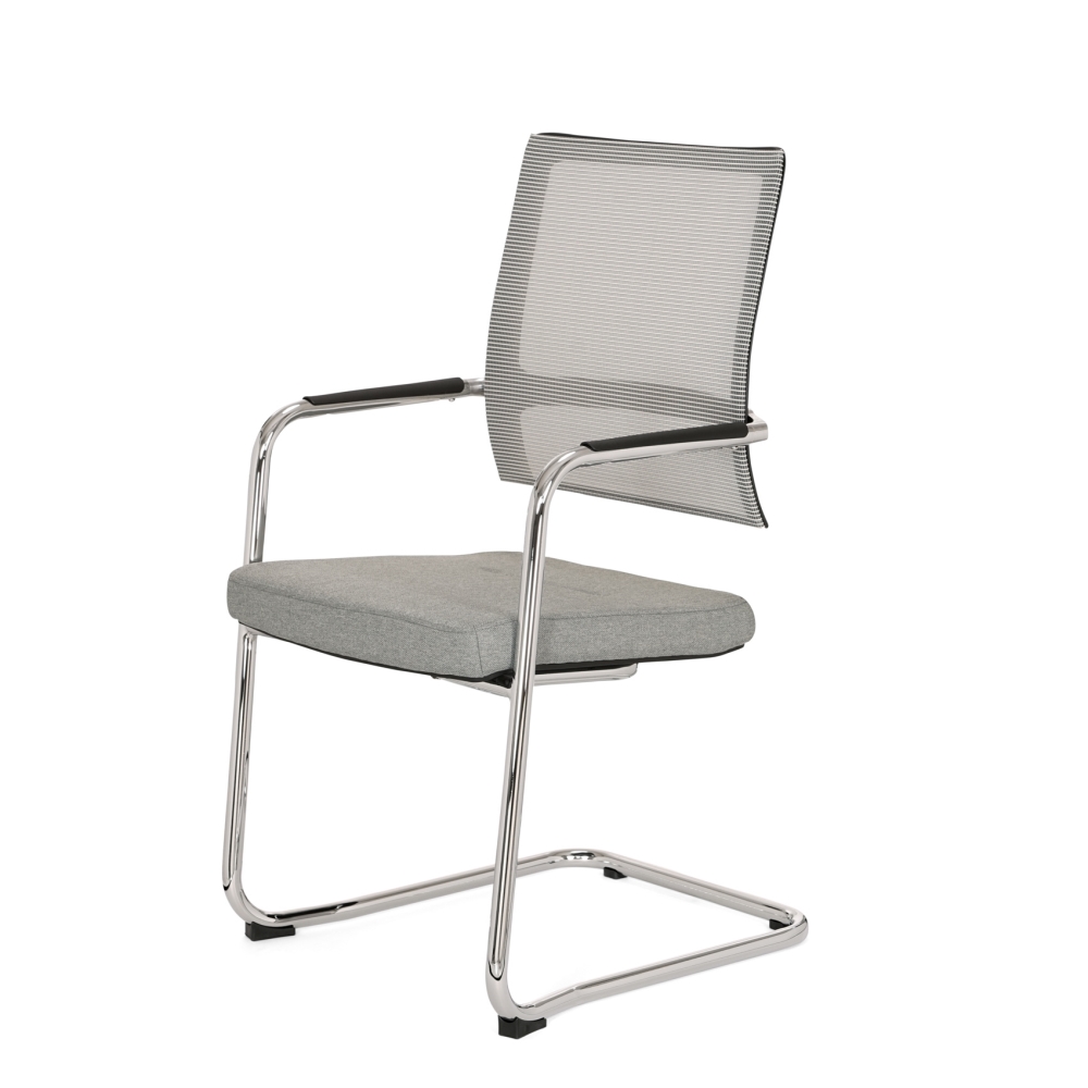 Een stapelbare vergaderstoel met grijze zitting en witte netweave rugleuning. De Flitz is stapelbaar tot 5 hoog en heeft een comfortabele zit door het sledeframe. Handig wanneer het aantal personen in de vergaderruimte vaak wisselt en u nog snel een vergaderstoel erbij wilt zetten. De zitting is van hoogwaardig koudschuim met een slijtvaste stof.