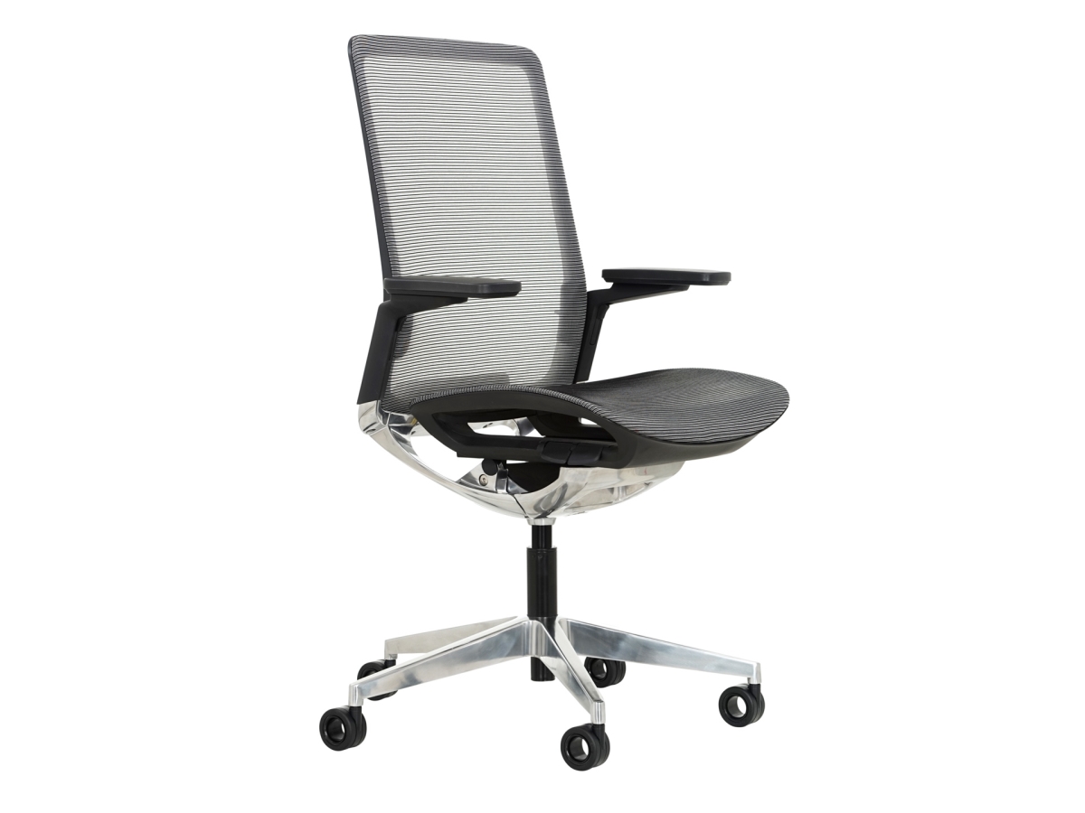 Ergonomische Design bureaustoel Stripes Van Cas compleet net bespannen zitting en rugleuning.Zonder het standaard gebruik van schuim, stof of leer dat mogelijk wordt gemaakt door de netbespanning uit Italië. Door extra druk in de netbespanning wordt er een in hoogte verstelbare lendesteun gecreëerd. Het design van de Stripes wordt versterkt door het compleet aluminium gepolijst mechaniek en voetenkruis.