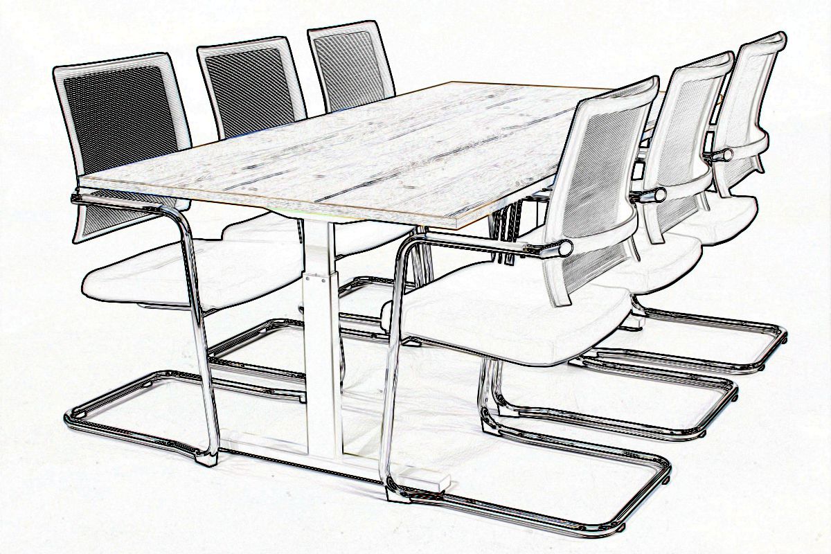 Vergadertafel 200 cm TUBE zilvergrijs-eiken